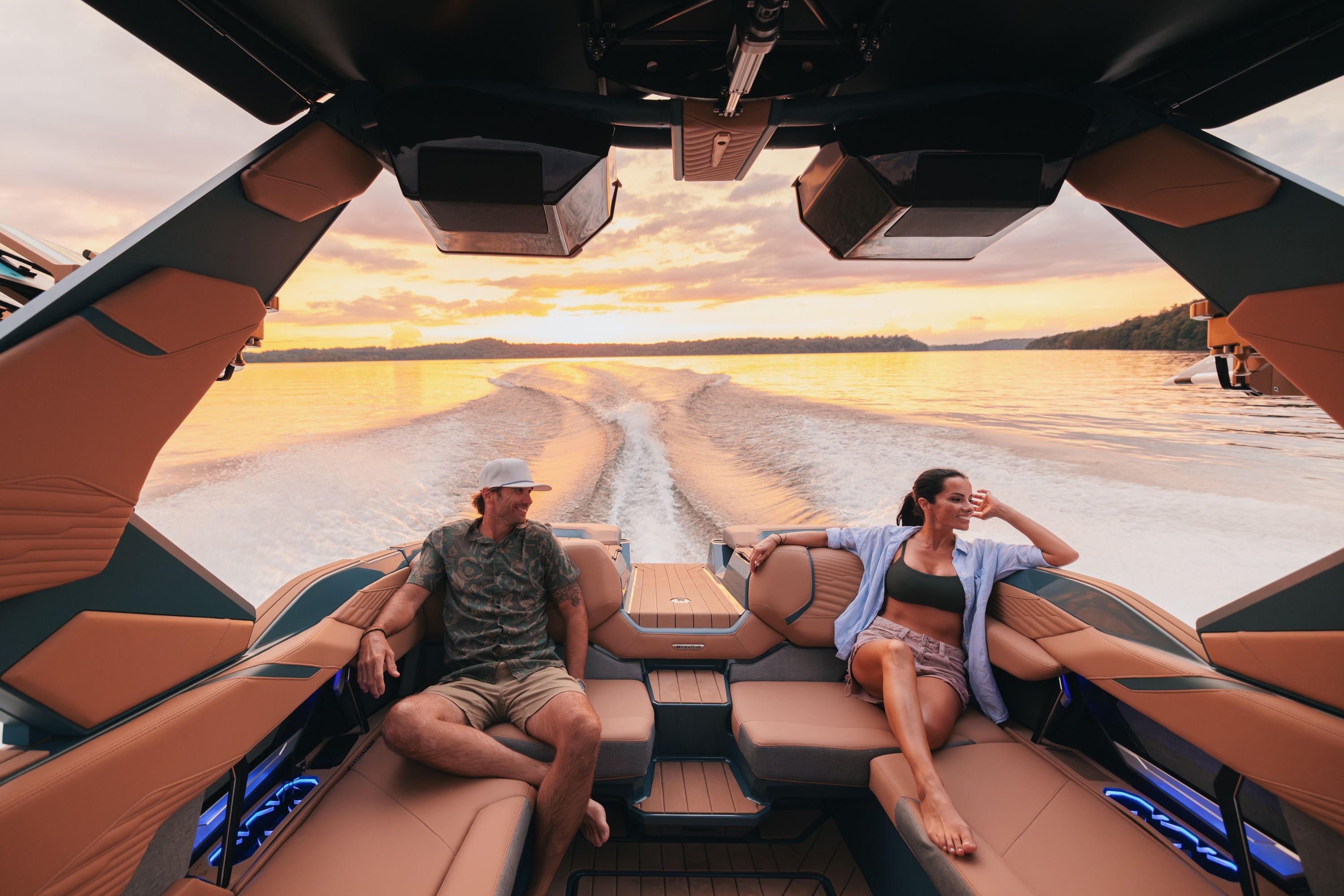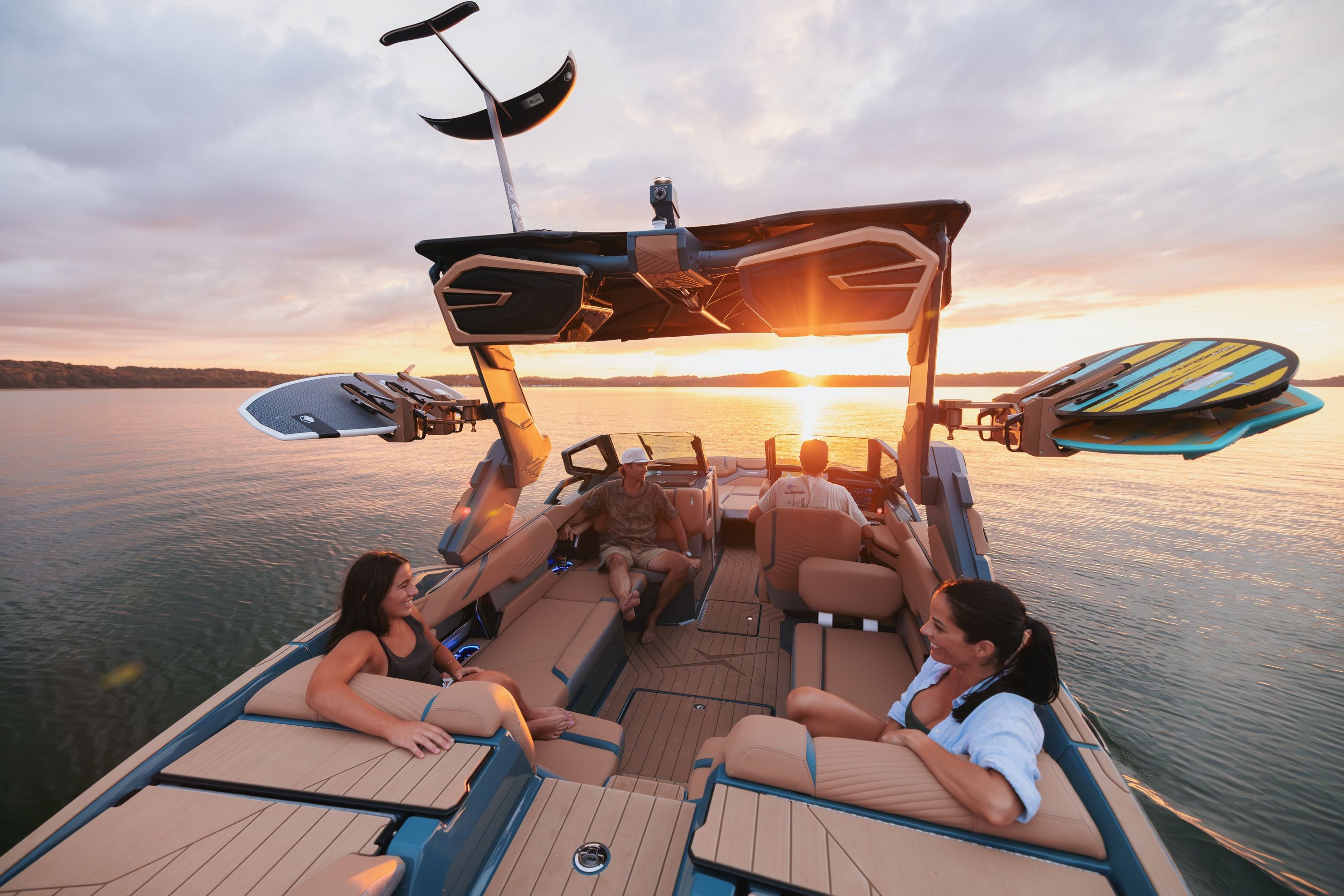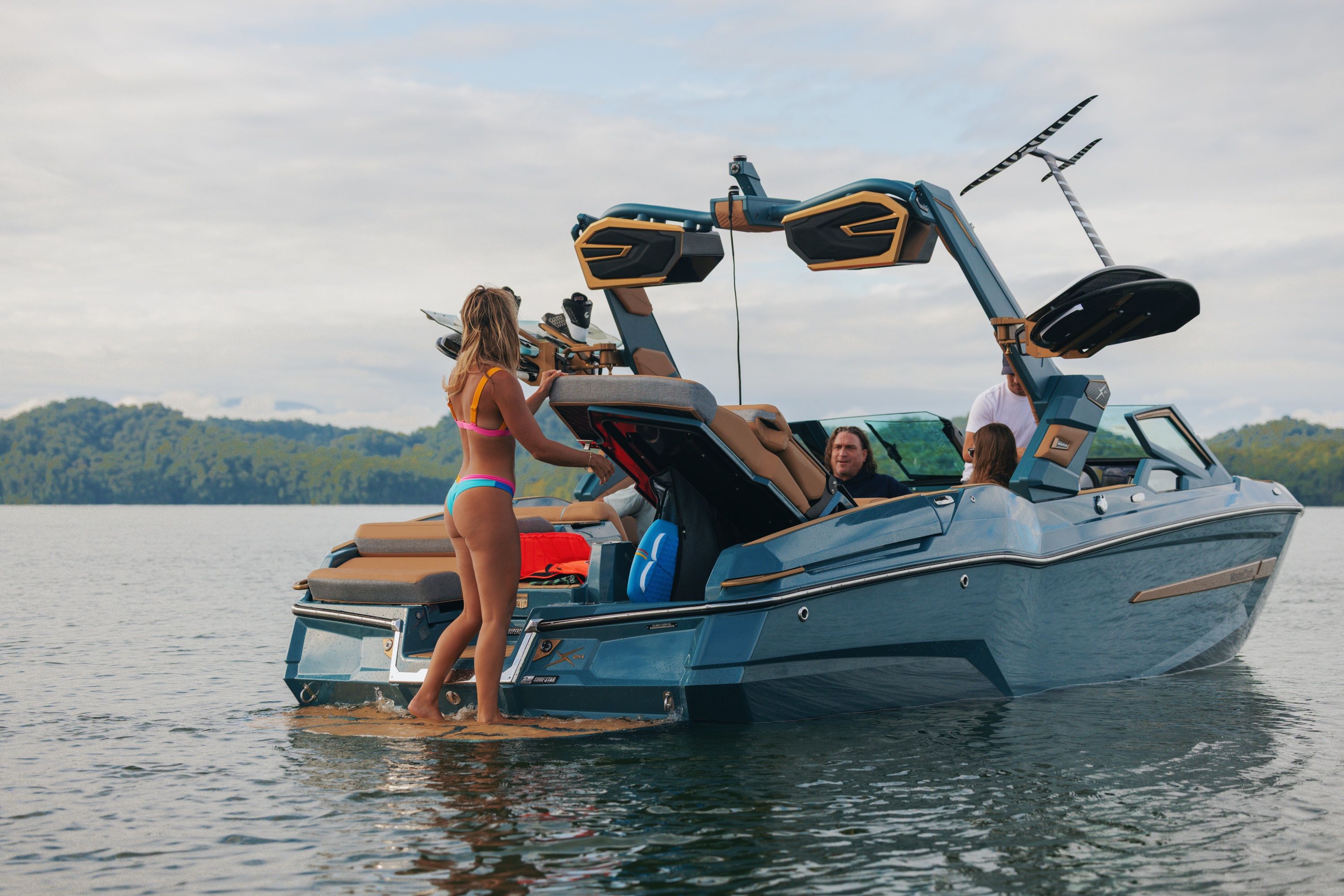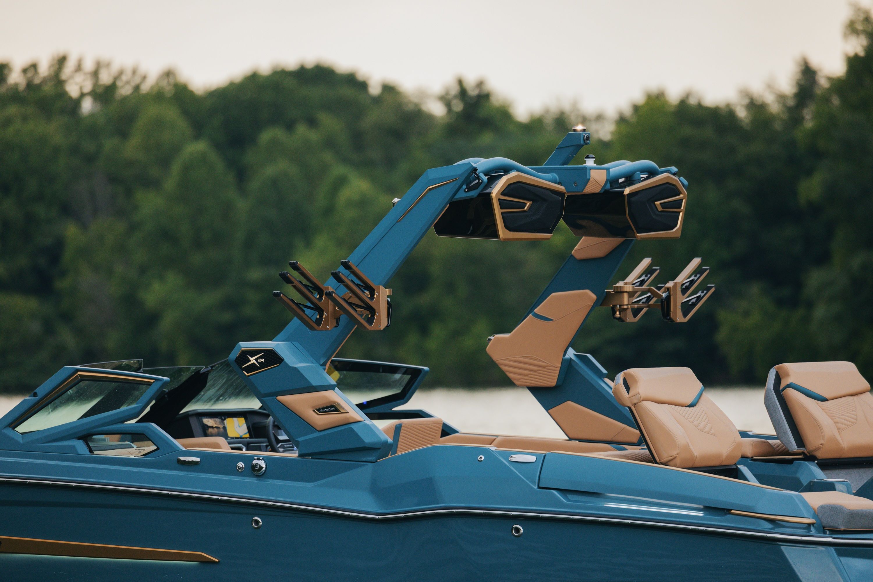 ![]() Z9 TOWERIntroducing the all-new Z9 tower, standard on every X24. Strong, sleek, and fully powered, it raises and lowers with the push of a button. Effortless control, right from the helm. | ![]() DUAL REAR COMPARTMENTSExclusive to the X24, dual transom compartments house removable, padded board bags. Store up to four boards in the rear, up to six more on the bimini, plus extra gear in flexible compartments. It’s seamless storage designed to keep your layout clean and your gear protected. | ![]() SOUND THAT STANDS OUTStandard on every X24, our all-new SoundStage Audio System. Precision-tuned by zone, SoundStage transforms the entire boat into a high-performance listening experience. Powered by Meridian, the system combines intelligent speaker placement, acoustic shaping, and beautifully integrated design. The result? Louder, crisper, more immersive audio—engineered for an experience, not just volume. |