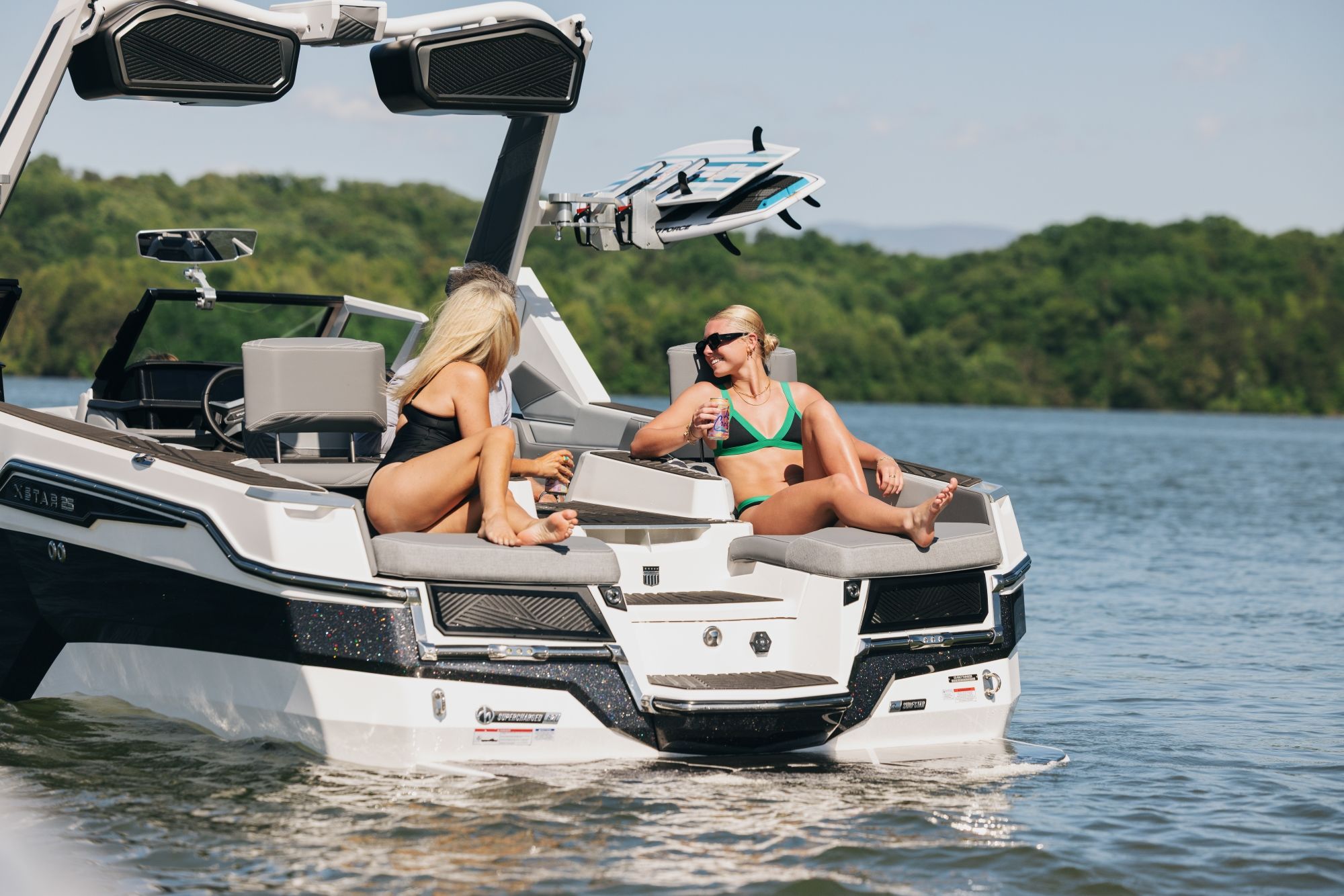 The XStar 25 brings all the signature performance, luxury, and style of the XStar lineup—and scales it up. At 25'7" with 3,975 pounds of ballast and 640 horsepower standard, this flagship pulls harder, rides smoother, and makes more room for everyone to live large. From pro-level wakes and waves to fine-tuned finishes and forward-thinking tech, the XStar 25 isn’t just the biggest boat in the lineup—it’s the boldest.