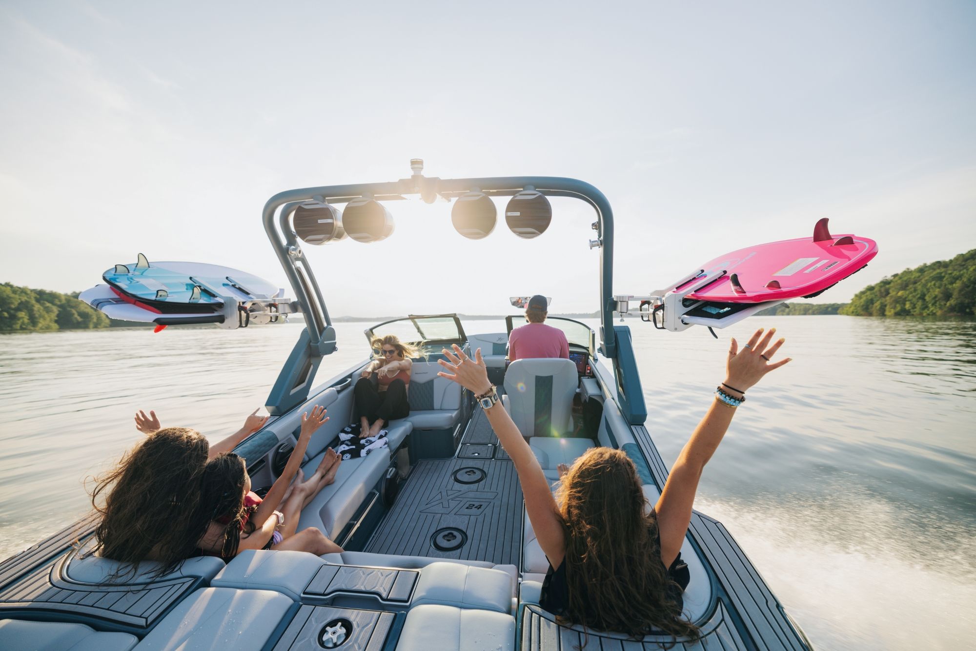 The XT24 is big, bold, and built to deliver—waves, comfort, and style all in one serious package. At 24 feet, it’s the largest in the XT lineup with room for 17 and 3,600 pounds of ballast, giving you clean, customizable waves thanks to SurfStar. Behind the wheel, a redesigned helm with a 12" touchscreen and new-for-2026 keyless entry, while the captain’s chair locks in comfort for long days on the water. Inside, it’s spacious and smart. Outside, choose from seven powder coat colors. Add in SoundStage, our custom-tuned, multi-zone audio system, and the XT24 brings the energy all day long. When you want maximum space, power, and style—the XT24 shows up ready.
